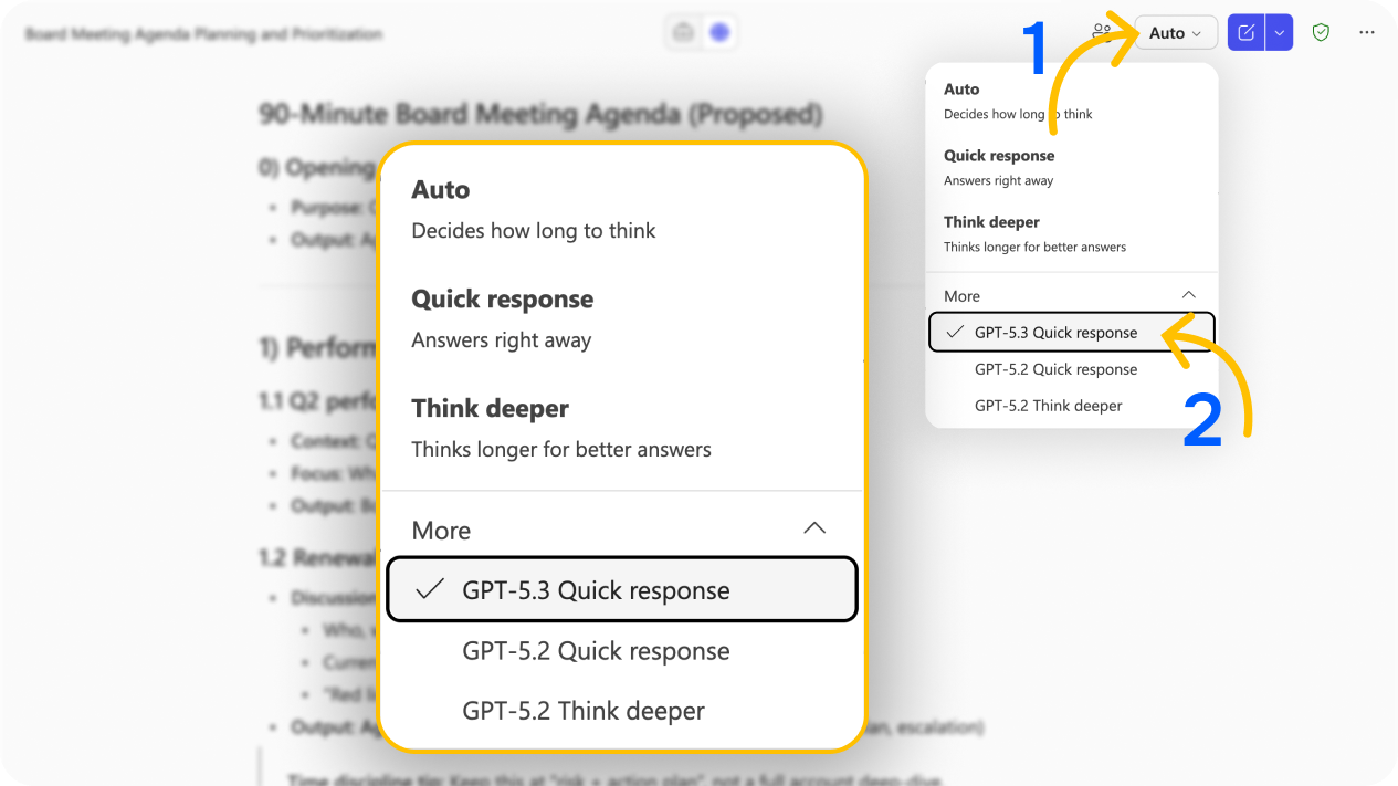 There is no published hard token limit, but Microsoft applies fair use rate limiting behind the scenes. If your whole team spent the day hammering Think Deeper for every message, you would likely hit throttling faster than if you stuck with Auto or Quick response. For most daily work, Auto handles things perfectly well. The manual model selection is there for when the task genuinely benefits from it.
